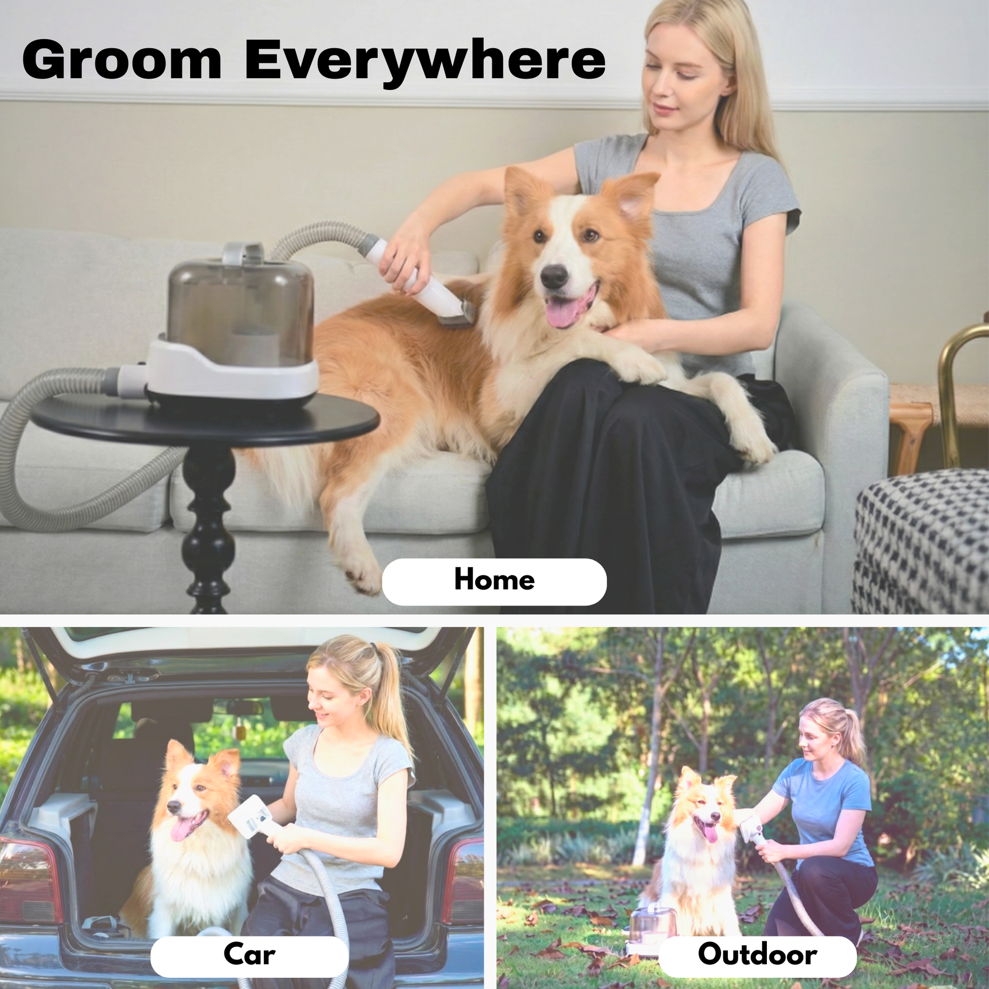 - Detangling slicker brush – gently loosens small knots and smooths the top coat while vacuuming fur away.